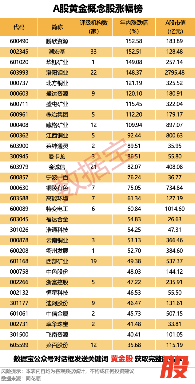 A股黄金概念股涨幅榜出炉A股黄金概念股涨幅榜出炉