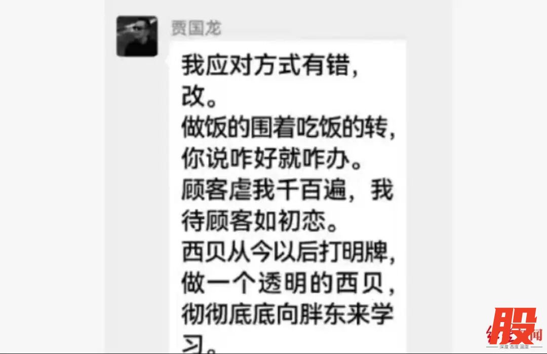 西贝创始人贾国龙道歉:我应对方式有错,改;以后打明牌,向胖东来学习西贝创始人贾国龙道歉:我应对方式有错,改;以后打明牌,向胖东来学习